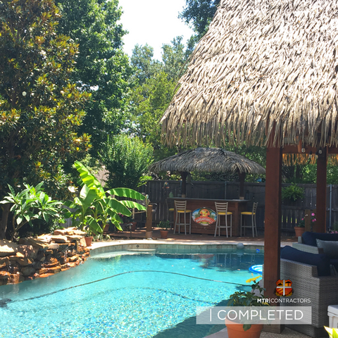 Are you thinking about getting an outdoor kitchen, a patio cover, pool, or new deck? Maybe spicing things up with a 20-year warranty synthetic thatch umbrella? We can help enhance your current area or completely re-design a new space. Don't wait. Have tenured professionals help you navigate the process of enhancing your backyard and schedule a free estimate today!